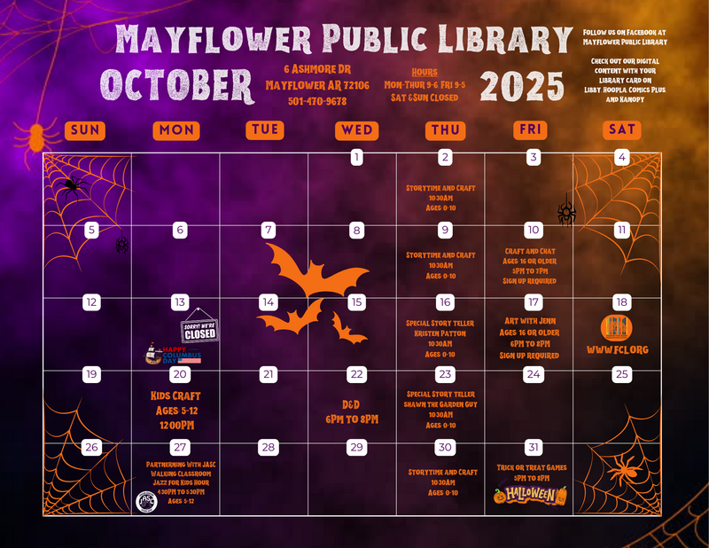 The Mayflower Library is a Branch of the Faulkner-Van Buren Regional Library System. The Groundbreaking Ceremony for The Mayflower Public Library took place on April 4, 1996. Welcome to our page - we hope that you will learn more about our wonderful events and activities and join us in learning and fun.